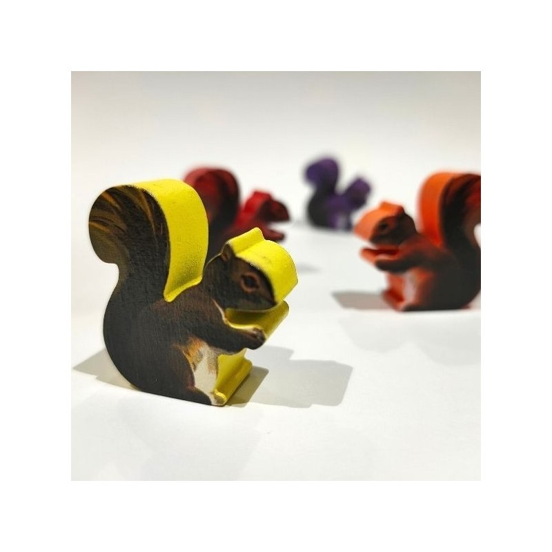 Este producto incluye 4 ardillas promocionales pintadas de madera.