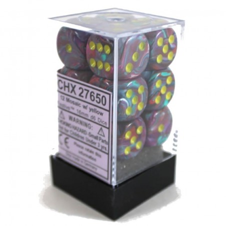 Chessex 16mm d6 with pips Dice Blocks (12 Dice) - Festive Mosaic/yellow