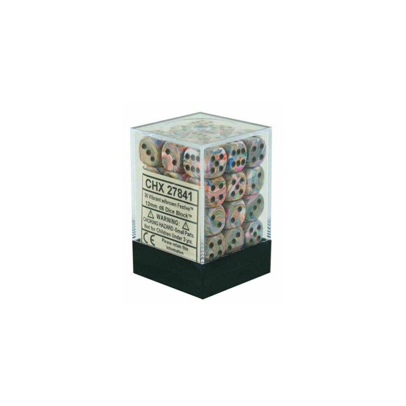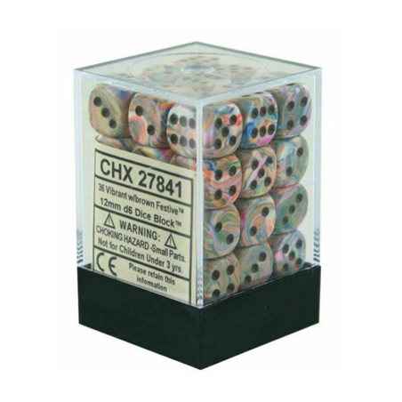 Chessex Signature 12mm d6 with pips Dice Blocks (36 Dice) - Festive Vibrant w/brown