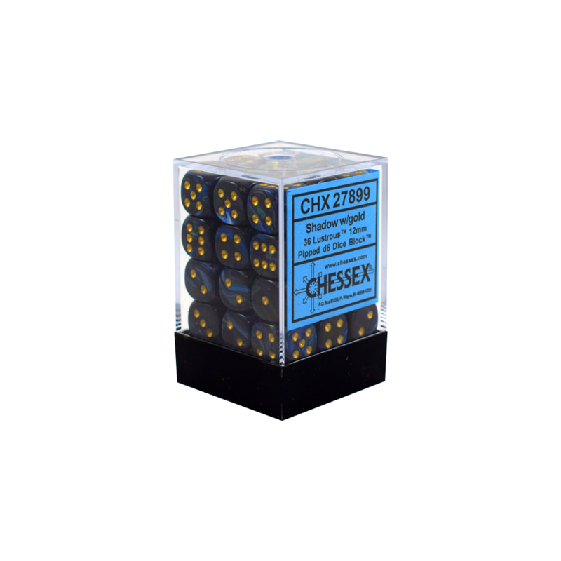 Chessex Signature 12mm d6 with pips Dice Blocks (36 Dice) - Lustrous Shadow w/gold