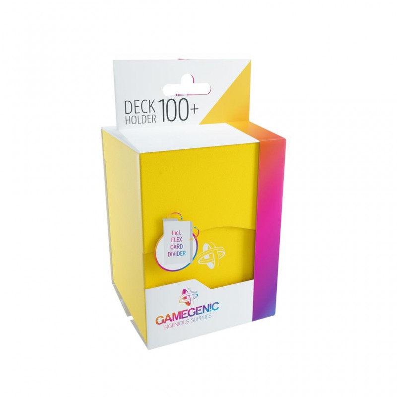 Este producto ofrece a los jugadores una solución inteligente y rápida para almacenar y organizar sus mazos de cartas. El Deck Holder 100+ es una caja para mazos básica que garantiza la protección de hasta 100 cartas con doble funda. Su tapa con autocierre puede abrirse hasta 180° gracias a la innovadora tecnología COBRA NECK de la parte posterior. Una práctica tira en blanco permite etiquetarlo individualmente. También incluye un separador de cartas flexible FLEX.