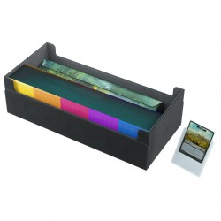 The Dungeon es ideal para guardar una colección completa de cartas. Puede albergar varias cajas de mazos, playmats, accesorios y gran cantidad de cartas individuales enfundadas. El mecanismo de cierre es sutil pero fuerte gracias a un ingenioso diseño que mantiene la caja cerrada de forma segura incluso cuando está completamente cargada.