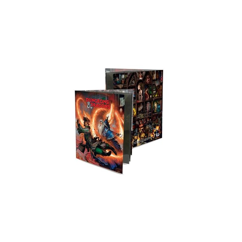 Organize your character sheets and notes with Ultra PRO's Dungeons & Dragons Character Folio. Each folio is printed with detailed full-color graphics featuring your favorite theme from the popular role playing game Dungeons & Dragons. Sheet protector pages in the folio can hold up to ten 8 1/2" x 11" character sheets and two 18-pocket sheets hold 36 standard size Spell Cards. The cover of the folio includes front and back inner pockets. Character sheets and cards are not included.