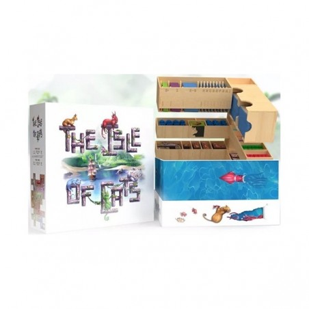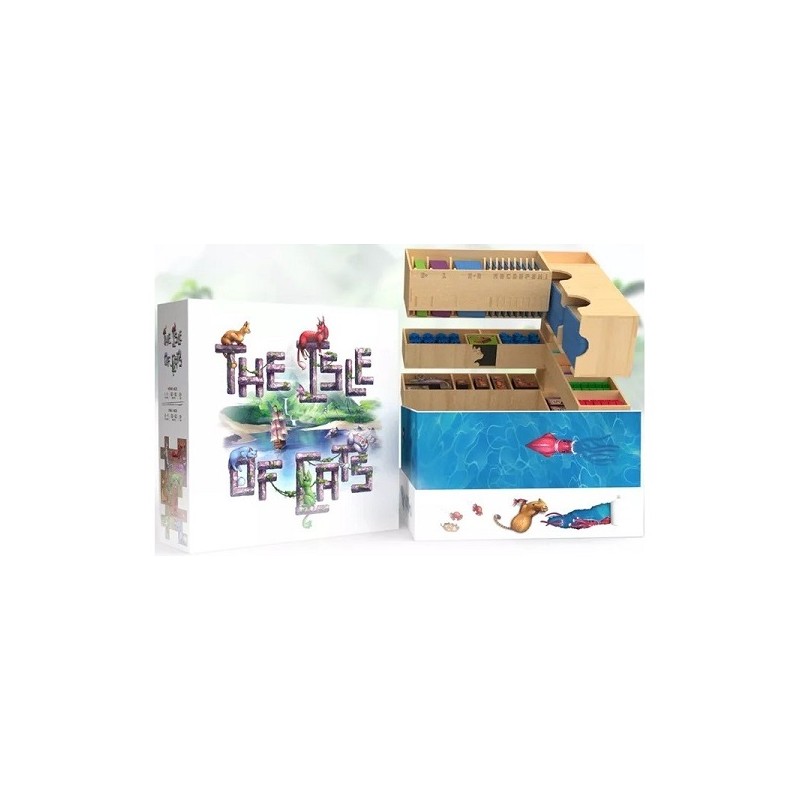 LA ISLA DE LOS GATOS BIG 2-MINUTE BOX. La Big '2-minute' Box es una solución de almacenamiento en madera diseñada para ayudar a montar el juego en solo 2 minutos. Puede contener La Isla de los Gatos y todas sus expansiones, incluyendo las promos y los paquetes de Kickstarter. Se puede almacenar vertical u horizontalmente, con cartas enfundadas, con espacio para los meeples de mejoras e incluso para una bolsa Bag'o'Fish adicional, en caso de que decidas duplicar tus componentes. Requiere ensamblaje.