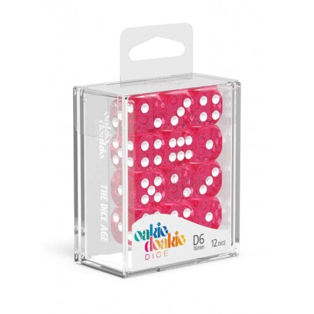 Los dados D6 están disponibles en juegos de 12 (16 mm) o 36 (12 mm) y están empacados en cajas fuertes con bandejas extensibles para que puedas llevarlos contigo y jugar donde quieras.