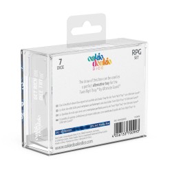 Los sets de dados RPG (para juegos de rol) consisten en 7 dados diferentes: D4, D6, D8, D10 (unidades), D10% (decenas), D12 y D20.
