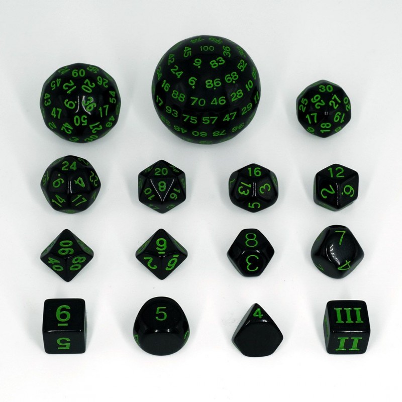Set de 15 dados acrílicos DD variados verde