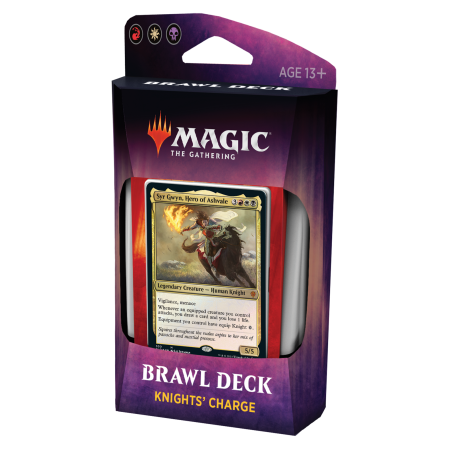 Los mazos de Brawl son mazos de 60 cartas listos para jugar. Son legales en Estándar y están diseñados específicamente para el formato Brawl. Hay cuatro mazos disponibles, y cada uno cuenta con siete cartas legales en Estándar que no están disponible en los sobres de El trono de Eldraine.