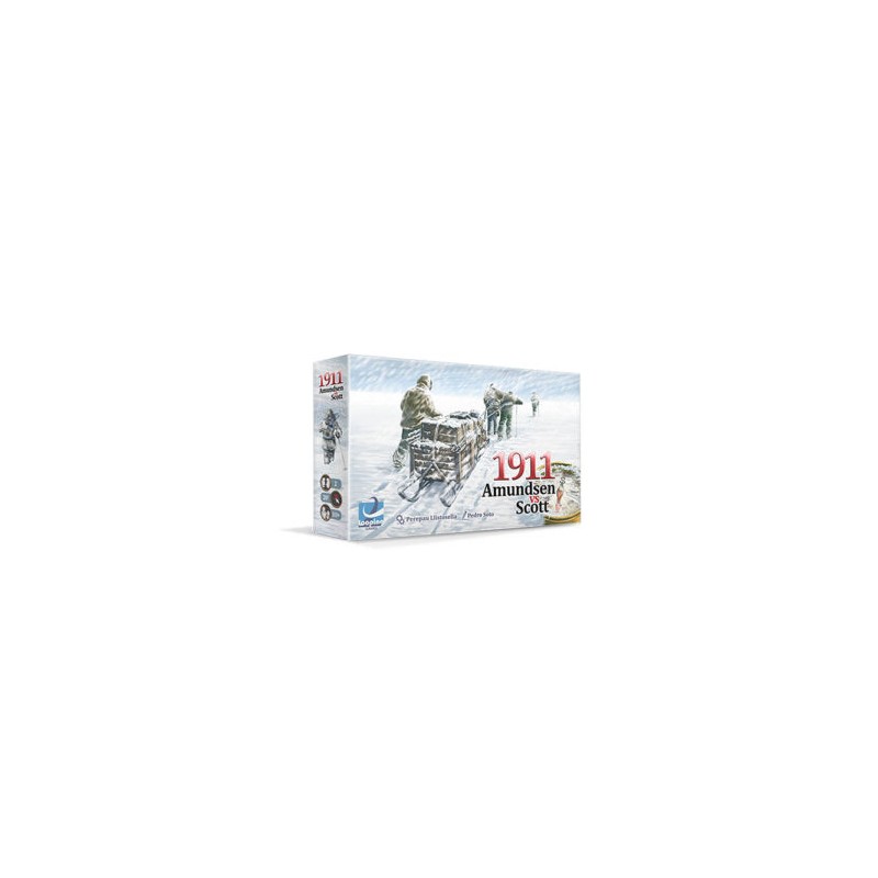 1911 AMUNDSEN VS SCOTT te presenta la mítica gesta de los mejores exploradores antárticos. ¡Este rápido y asimétrico juego para 2 jugadores, fácil de aprender y lleno de detalles históricos, captura toda la emoción y aventura de la épica carrera al Polo Sur!