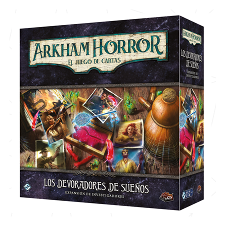 La expansión de investigadores Los devoradores de sueños se puede emplear para crear o potenciar mazos de investigador para cualquier escenario o campaña de Arkham Horror: El juego de cartas.