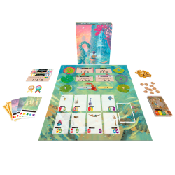 30 cartas transparentes, 1 tablero 16 cintas doradas, 10 fichas de paleta, 2 cintas de ganadores , 18 cartas , 18 fundas.