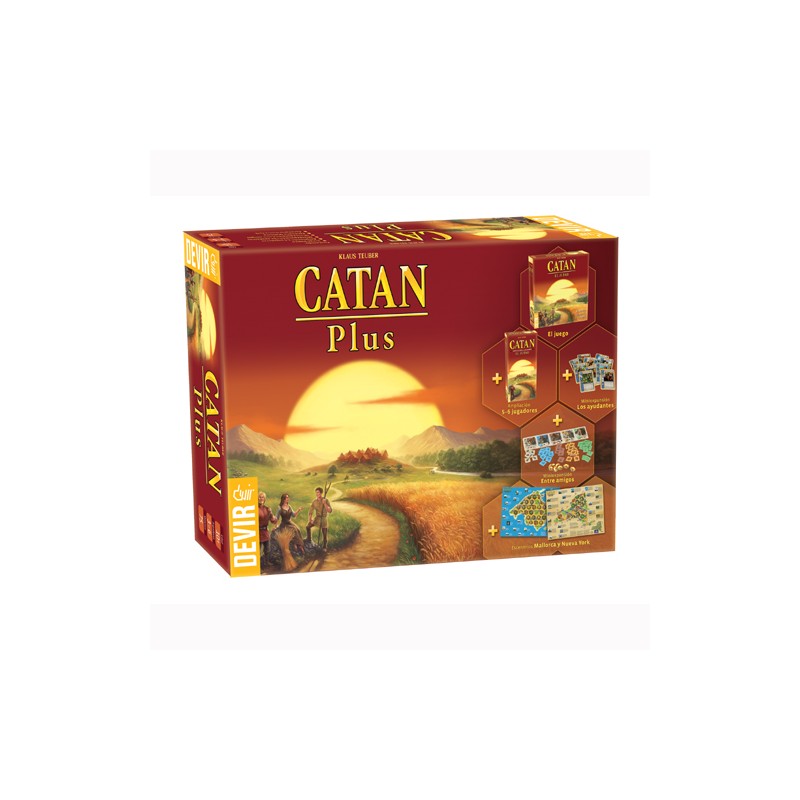 El juego básico, la ampliación para 5-6 jugadores, dos escenarios especiales y dos miniexpansiones… ¡en una sola caja! Todos los componentes adicionales pueden combinarse con los componentes del juego básico, y todos ellos pueden jugarse con hasta 6 jugadores. Cada una de las expansiones y escenarios aporta nuevas posibilidades de juego para Catan.