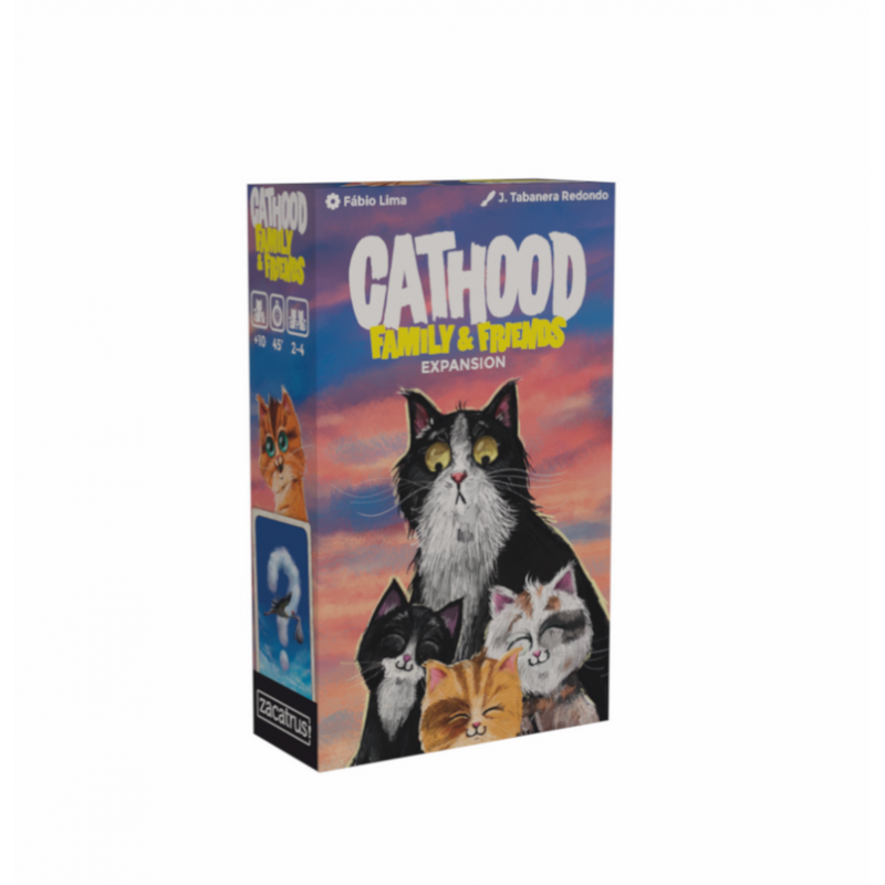 Cathood Family & Friends es una expansión para Cathood. Amplía las posibilidades y estrategias del juego base al añadir nuevo contenido, cartas de Evento, de Conocimiento, Bonificación y …¡de Gatitos!