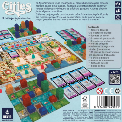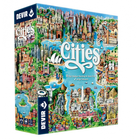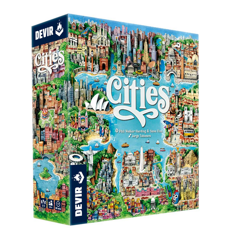 Cities es un juego de construcción de ciudades en el que redactarás los mejores proyectos y los organizarás en tu propia zona de juego. Diseñado por Steve Finn y Phil Walker Harding (autor de Sushi Go, Dungeon Raiders o Cacao) e ilustrado por Jorge Tabanera, permite partidas para grupos de 2 a 4 jugadores, de 10 años en adelante, con una duración de unos 40 minutos. Con mecánicas de colocación de trabajadores y construcción de patrones, el juego nos dará la oportunidad de visitar las ciudades de Sídney, Venecia, Nueva York, Barcelona, Río de Janeiro, Lisboa, México D.F. y Buenos Aires. ¿Serás capaz de diseñar el barrio más deslumbrante?
