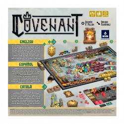 Diseñado por Germán P. Millán (autor de Bitoku, Sabika o Men Nefer) e ilustrado por Enrique Fernández, Covenant se puede disfrutar en solitario o en partidas de hasta 4 jugadores, a partir de 14 años, en sesiones de unos 100 minutos de duración. En Covenant, cada jugador es el jefe de un clan enano que ha aceptado el pacto para recuperar el hogar ancestral de los enanos. A lo largo de 3 rondas, denominadas eras, cada clan contribuirá a la reconstrucción de la ciudad perdida, conquistada y arrasada por fuerzas oscuras hace siglos.