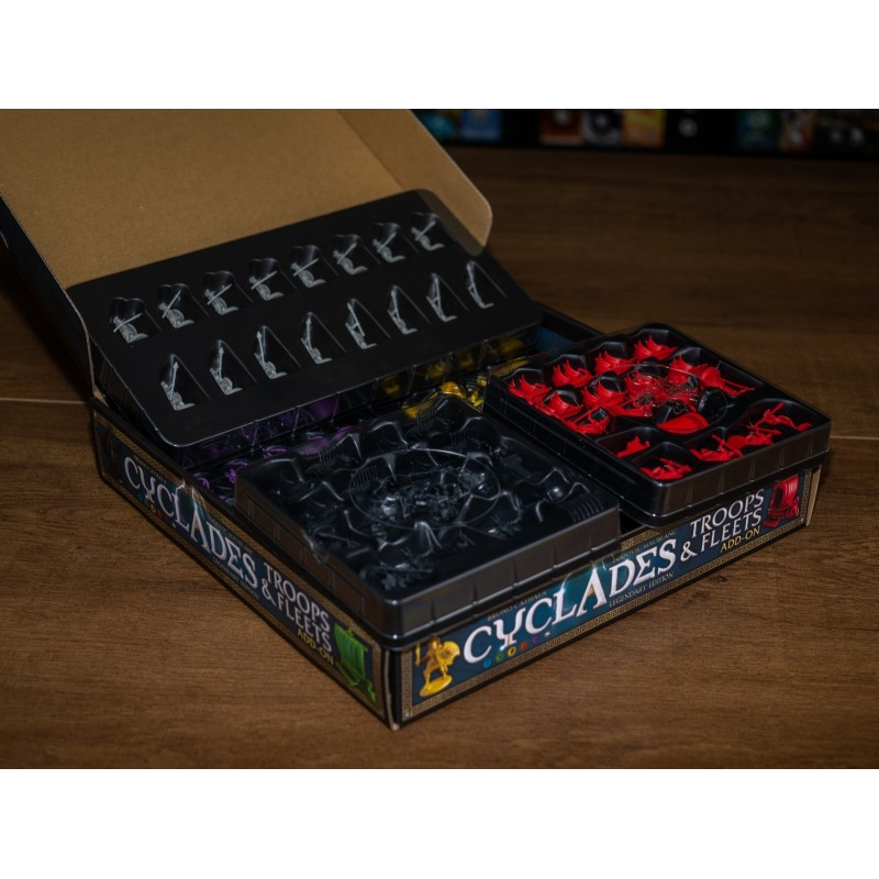 Tropas y Flotas es un paquete de complementos para mejorar tus juegos de Cyclades: Edición legendaria.