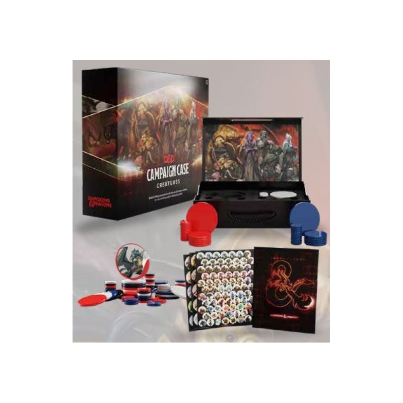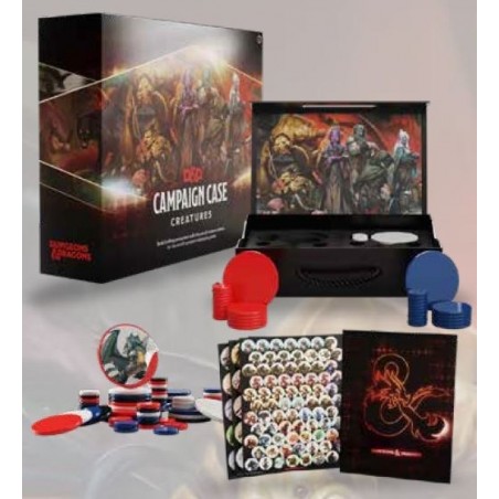 Este estuche de campaña equipa al director de juego con un fantástico conjunto de fichas de criaturas personalizables que complementarán cualquier aventura de D&D o campaña casera. Los fichas de alta calidad y la amplia selección de adhesivos reutilizables de criatura hacen que este kit esté listo para cualquier encuentro. También es el compañero perfecto para Campaign Case: Terrain. Usa ambos estuches juntos para crear una experiencia premium para todas tus aventuras.