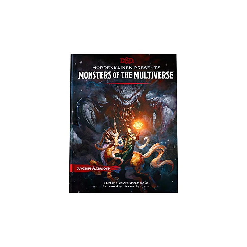D&D MORDENKAINEN PRESENTS MONSTERS OF THE MULTIVERSE. Un bestiario de formidables aliados y enemigos para el mejor juego de rol del mundo.Este libro de hechizos iluminado por los reflejos del mago Mordenkainen contiene una serie de criaturas para usar en el juego de rol Dungeons & Dragons . En esta recopilación y actualización de monstruos que aparecieron originalmente en Guía de monstruos de Volo y Tomo de los enemigos de Mordenkainen, las criaturas representan algunas de las fuerzas más benevolentes y maliciosas a las que pueden enfrentarse los héroes de D&D. Este libro también reúne a personas de fantasía de muchos mundos diferentes. Cada uno de estos pueblos representa una opción de raza cuando creas tu personaje de D&D, ampliando las opciones del Manual del jugador.