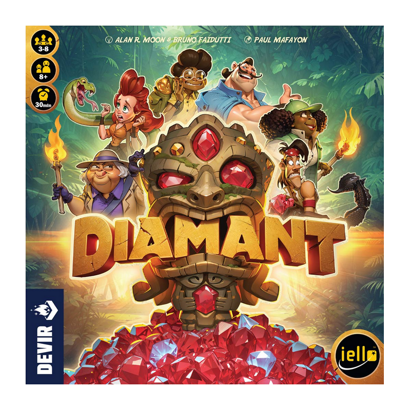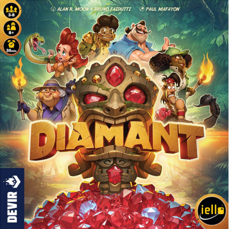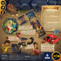 Diamant es un juego de push your luck en el que deberemos representar a exploradores que desean quedarse con la mayor cantidad de diamantes posible. Para conseguirlo deberán, en todos los turnos, tomar la sabia decisión de si avanzan en su viaje o si se detienen antes de perecer.