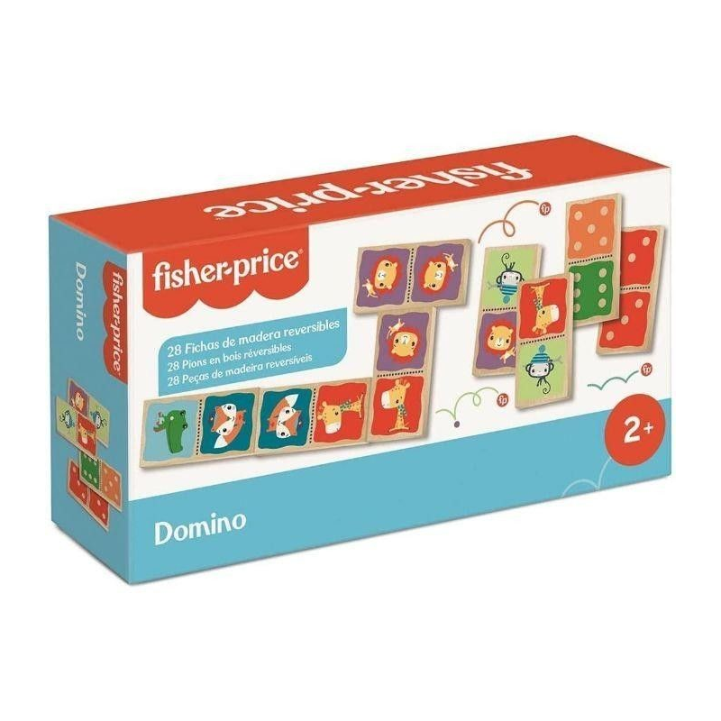 Dominó de madera con fichas reversibles. Números y animales para los más pequeños de la casa.