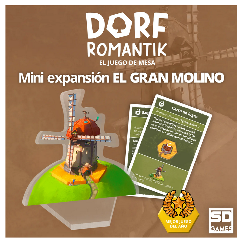 La Mini Expansión El Gran Molino para Dorfromantik que acompañó a la primera edición del juego ahora disponible por separado para aquellos que no pudieron conseguirla.