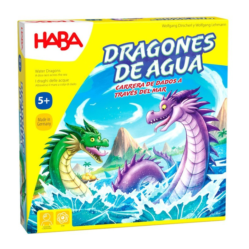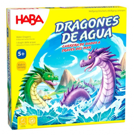 Dragones de Agua es un juego de mesa para niños en el que, cuando los dragones emergen de las profundidades del océano, los niños tendrán que ayudarlos a nadar hasta la bahía para que puedan poner sus huevos. Pero cuidado ¡peligrosos tiburones se cruzarán en su camino!