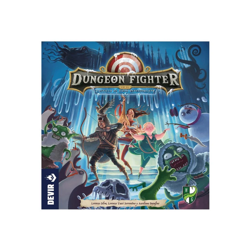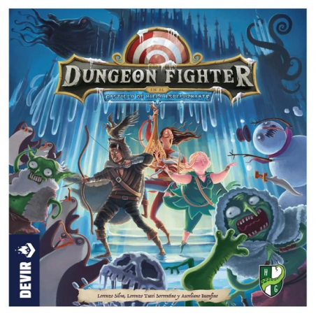 Llega una nueva aventura en una fortaleza helada para nuestros aspirantes a héroes! Esta nueva (y gélida) aventura puede jugarse de forma independiente o en combinación con cualquier otro juego de la serie Dungeon Fighter. Como novedad, esta edición incorpora 4 dados especiales (los 3 minúsculos dados de agua y el dado de nieve), 4 nuevos personajes, 21 monstruos, 3 jefes y un montón de nuevas cartas de equipo y de mazmorra. Y tampoco pueden faltar nuevos chismes de plástico para poner a prueba la habilidad de los jugadores: el muro de hielo, la cascada helada, el estanque quebradizo y los icebergs. Que vuestros héroes no olviden la bufanda y los guantes!