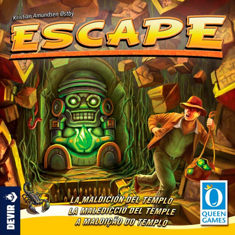 ESCAPE LA MALDICION DEL TEMPLO. Escape: The Curse of the Temple es un juego cooperativo en el que los jugadores deben escapar de un templo que está maldito antes de que el templo se derrumbe y mate a uno o más exploradores, con lo que todos pierden. Sois parte de un equipo de aventureros: encerrados en un templo maldito! Juntos tendréis que activar las piedras mágicas en las distintas cámaras del templo para acabar, de una vez por todas, con sus maldiciones y escapar antes de que se derrumbe por completo. Y todo ello en menos de 10 minutos!
