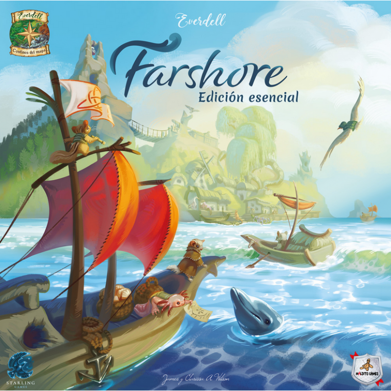 En Farshore emprenderás una aventura marítima épica para explorar y construir en la escarpada zona al norte del valle de Everdell. Estudia los vientos para navegar a bordo de tu barco en busca de valiosas riquezas, compite por los lugares más lucrativos en las islas antes de que suba la marea y sé el primero en reclamar los preciados mapas que te conducirán a tesoros escondidos.