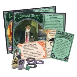 Guía de aprendizaje, Referencia de reglas, Tablero con 4 medidores de recursos, 22 figuras de monstruo de plástico, 10 hojas de personaje, 3 hojas de referencia de traidor, 6 hojas de referencia de jugador, 10 figuras de personaje de cartón, 1 ficha de Jugador activo, 4 marcadores de Traidor, fichas de Pasajero, 1 dado de 8 caras, 1 ficha de Viaje, 1 ficha de Ritual, 14 cartas de Lealtad, 70 cartas de Mitos, 2 cartas de Rol, 20 cartas de Hechizo, 20 cartas de Escala, 20 cartas de Objeto, 9 cartas de Daño del barco, 10 cartas de Proeza, 126 cartas de Habilidad