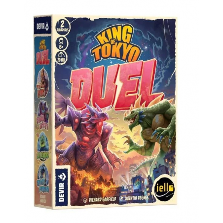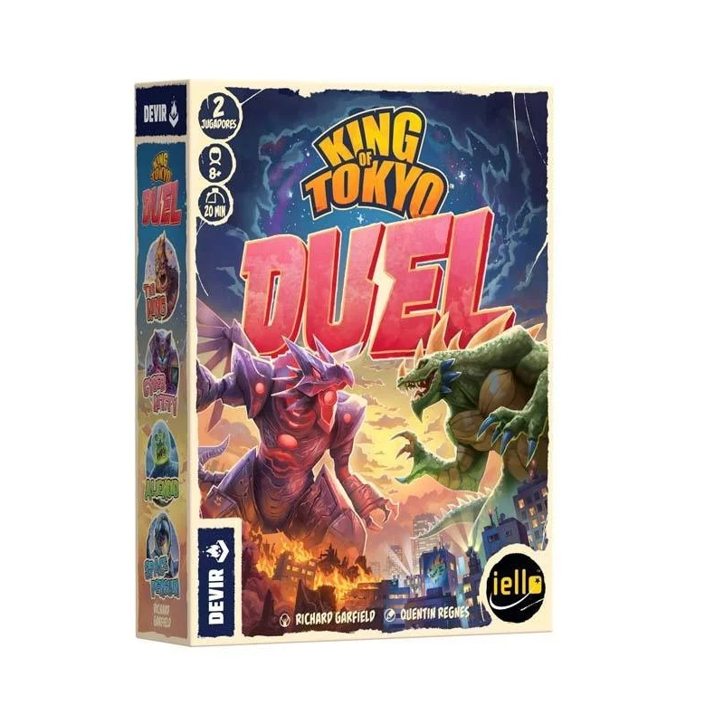 King of Tokyo: Duel es un juego de mesa diseñado por Richard Garfield que te presenta la experiencia kaiju definitiva ¡Es hora de la pelea decisiva! Tira los dados, aplasta a tu rival y haz vibrar a la multitud para convertirte en el rey definitivo de Tokio.