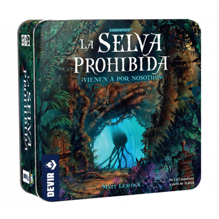 Diseñado por Matt Leacock (el célebre autor de la saga Pandemic), La selva prohibida permite partidas para parejas y grupos de hasta 5 jugadores, a partir de 10 años, de unos 45 minutos de duración. En este juego cooperativo, los jugadores deben trabajar en equipo para activar un portal y escapar antes que se derrumbe el terreno o que les atrapen los aliens.