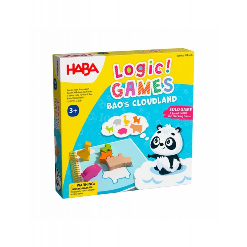 A la osita panda Bao le encanta mirar las nubes e imaginar animales. El juego propone una experiencia 2 en 1: primero hay que encajar las piezas de animales en la silueta del cuaderno y, después, apilarlas en el orden indicado.