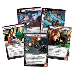 ¡El Pack de Héroe Viuda Negra incluye un mazo pregenerado para la Viuda Negra que utiliza el aspecto Justicia, el conjunto de Archienemigo del Supervisor y cartas adicionales para darte más opciones para la creación de mazos! ¡Con un perfil bien equilibrado y una carta de Planificación para cada ocasión, la Viuda Negra siempre está preparada para lo que pueda pasar!