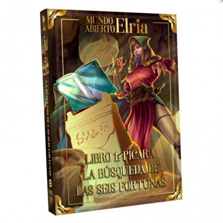 Mundo Abierto: Elria - Libro 1: Picara - La Busqueda de las Seis Fortunas es una expansión narrativa para el juego de cartas Mundo Abierto presentada en formato libro. Esta campaña en solitario invita a recorrer el continente de Elria siguiendo el rastro de las legendarias Seis Fortunas, reliquias que durante generaciones han alimentado historias del gremio de los pícaros.