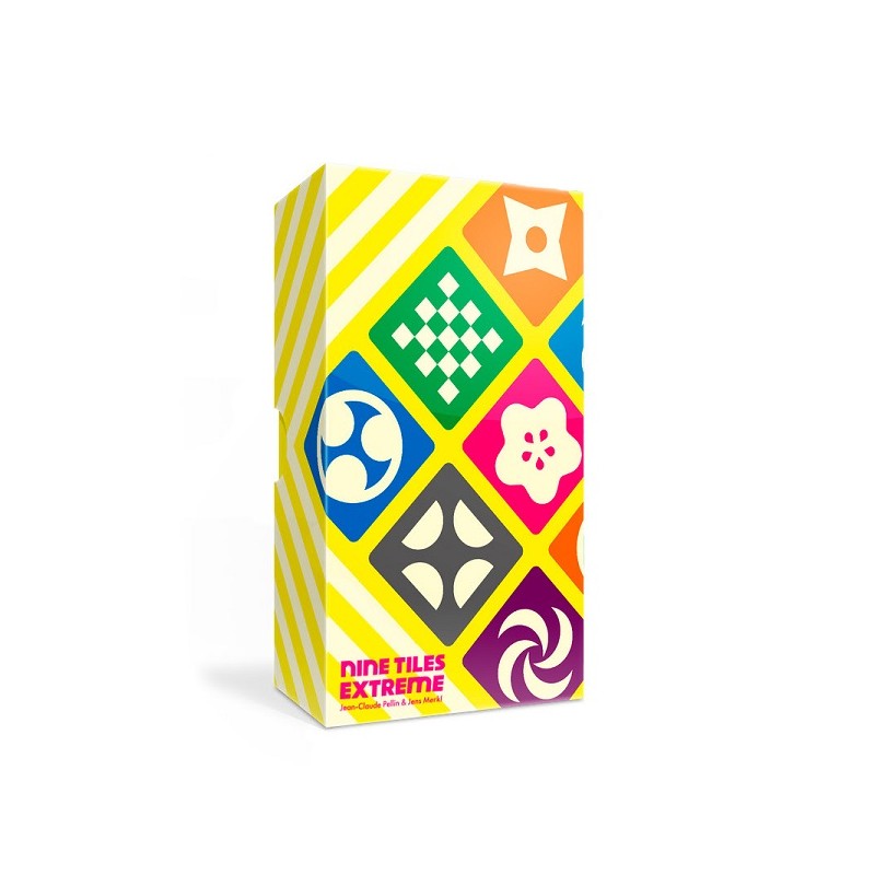 NINE TILES EXTREME. Empareja tus 9 fichas más rápido que nadie. Pero espera, el anverso y el reverso de las fichas tienen marcas diferentes. Ahhhh! Forma o color... ¿ con cuál debo emparejar!? Que no cunda el pánico! Es la versión "Extreme" de "Nine Tiles", ahora más caótica que nunca! Después de haber vendido más de 200.000 copias, el popular juego de mesa "Nine Tiles" ha recibido una versión avanzada que ya está disponible! Mueve y voltea tus 9 fichas para conseguir que coincidan con un patrón dado. Aunque las reglas básicas de ordenar las fichas para hacerlas coincidir con una tarjeta temática son las mismas que en el "Nine Tiles" normal, esta versión introduce patrones polivalentes que se pueden hacer coincidir tanto por color como por forma. ¿Tendrás que emparejar las formas esta vez? ¿O con los colores? Aquí llega el juego de rompecabezas de velocidad que confundirá aún más tu cerebro!