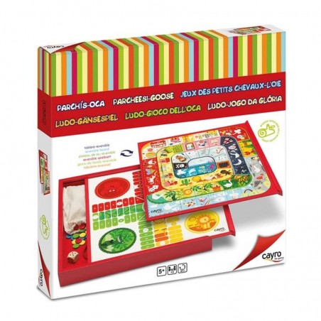 Caja de madera con los juegos y accesorios de los conocidísimos juegos de mesa. Con maravillosas ilustraciones infantiles
