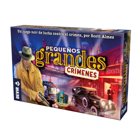 Obra de Scott Almes e ilustrado por Nikoletta Vaszi, Pequeños Grandes Crímenes se puede jugar en solitario o en grupos de hasta 4 jugadores, a partir de 14 años, en sesiones de unos 45 minutos. La colección Pequeños grandes (Tiny epic, en su versión original) se caracteriza por tener en común el hecho de traer un montón de componentes en una caja muy pequeña. Cada juego, además, es único, tanto por su temática como por sus mecánicas.