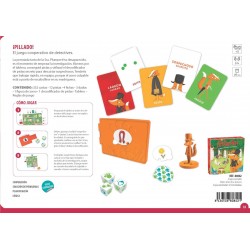 Contenido: 32 cartas, 12 pistas, 4 fichas, 3 dados, 1 figura de zorro, 1 decodificador de pistas, tablero, reglas de juego.