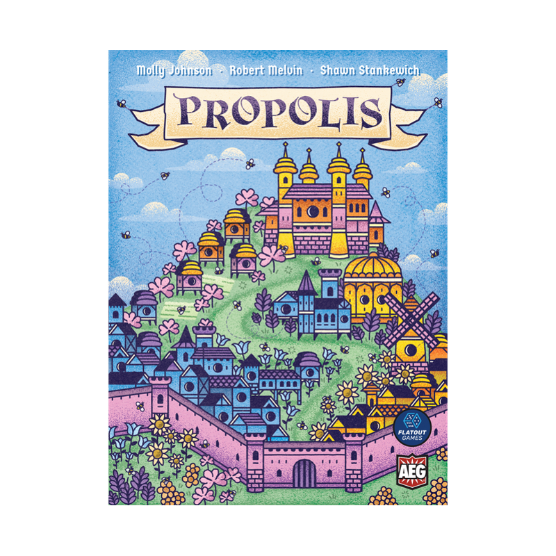 ProPolis es un juego de colocación de trabajadores, construcción de motores, control de área y construcción de cuadros para 1-4 jugadores. Los jugadores asuman el papel de las colonias de abejas medievales competitivas y se turnan para desplegar abejas trabajadoras para recolectar polen, fortalecer sus posiciones y construir sus colmenas para apaciguar a su reina y convertirse en la más gloriosa de la tierra. A medida que las abejas compitan sobre los paisajes florales del reino, recolectarán polen para crear el propóleos que necesitan para construir sus colmenas. Lograr dominio en diferentes reinos proporciona gloria adicional y materiales de construcción.