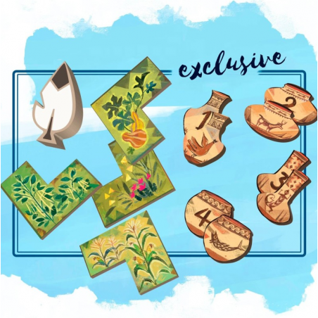 Piezas en madera para el juego Pueblo con piezas en madera que sustituyen a las piezas de cartón ya incluidas en la caja.