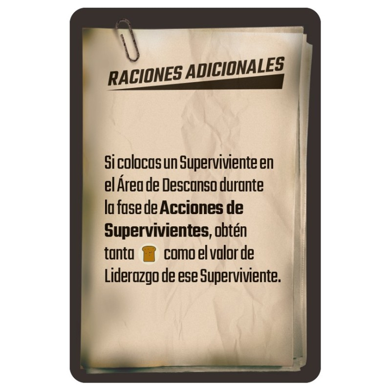 Tus cartas de Superviviente representan personas que se unen a tu Facción y viven en tu Complejo. Cada carta te otorga una habilidad que puedes usar 1 vez por ronda.