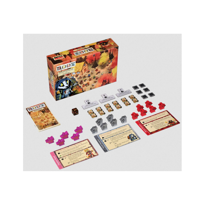 Seis nuevos secuaces Los Portadores de Llamas y las Ratas Contrabandistas Los Guardianes de las Cámaras Acorazadas y los Tejones Guardaespaldas La Banda Popular y la Banda Callejera Contenido 17 Figuras de Madera . 3 Cartas de Tarot 6 Cámaras Acorazadas . 1 Dado 12 Marcadores de Control . 3 Marcadores de Secuaces Caja de Secuaces Espacio para guardar todos tus secuaces de Root, incluyendo los de los siguientes productos: Expansión Los Merodeadores Pack de Secuaces Ribereños Pack de Secuaces Subterráneos