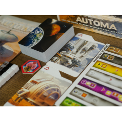 Terraforming Mars: Automa te proporciona una nueva experiencia para jugar en solitario a Terraforming Mars. En vez de una carrera contra reloj, Automa te permite competir contra corporaciones dirigidas por algoritmos y cartas especiales y, además, hace posible añadir cualquier expansión para crear el desafío que estás buscando.
