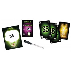 En esta nueva versión de The Mind, las cartas se juegan boca abajo y uno de vosotros es el vidente, ¡y el vidente sabe más! Se le permite ver algunas cartas de antemano y dar valiosos consejos al equipo usando la pizarra.