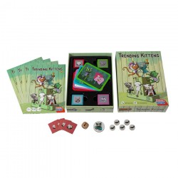 Esto es trending kittens. Un juego losetero dónde tienes que ir colocando tus losetas en la mesa de juego para voltear las losetas de los demás hacia abajo y las tuyas hacia arriba. Al final de la partida, el que tenga más losetas hacia arriba será el gato ganador, además, una vez durante la partida podrás utilizar tu poder de clan girándolo y haciendo la partida mucho más difícil para tus contrincantes. ¿Serás tú el gato más ‘trendy’?