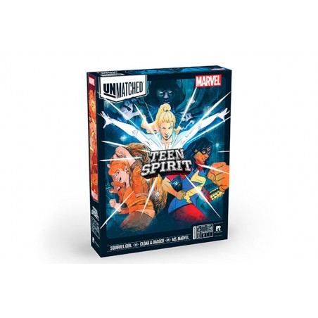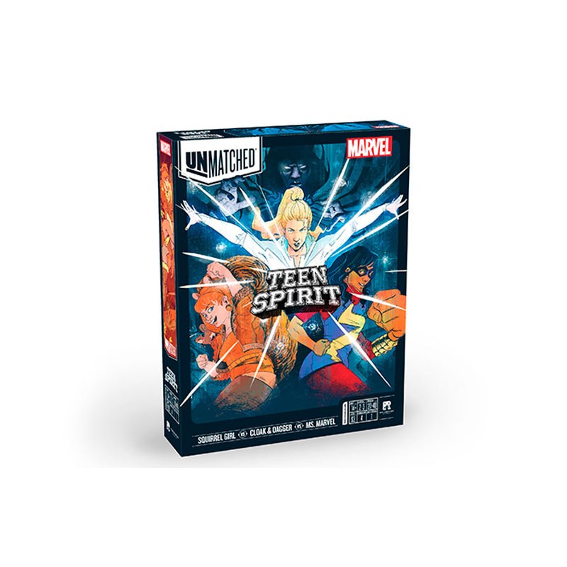 ¡El espíritu adolescente de Marvel toma el sistema de juego de los combates imposibles con Unmatched Marvel Teen Spirit! Juega con Ms. Marvel, Squirrel Girl y Cloak and Dagger con esta nueva ampliación del juego de mesa de los combates imposibles que a España llega únicamente en inglés distribuido por TCG Factory (por temas de licencia ha sido imposible traducirlo).