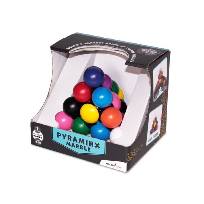 PYRAMINXS MARBLE PIRAMIDE. El sofisticado mecanismo de giro y clic del Pyraminx Marble hace que sea un placer jugar con él mientras intentas conseguir 10 colores de los cuatro lados.